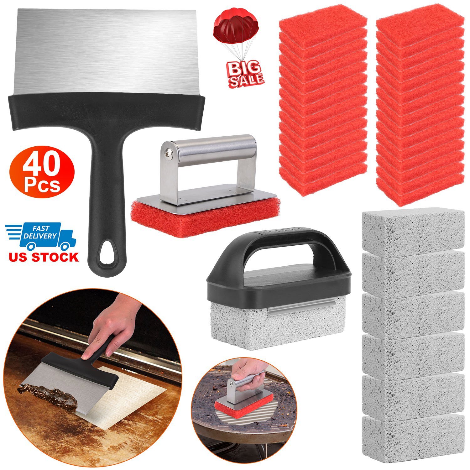 40Pcs Griddle Cleaning Kit for Blackstone with Grill Stone Griddle Scraper Griddle Brush with Stainless Steel Handle