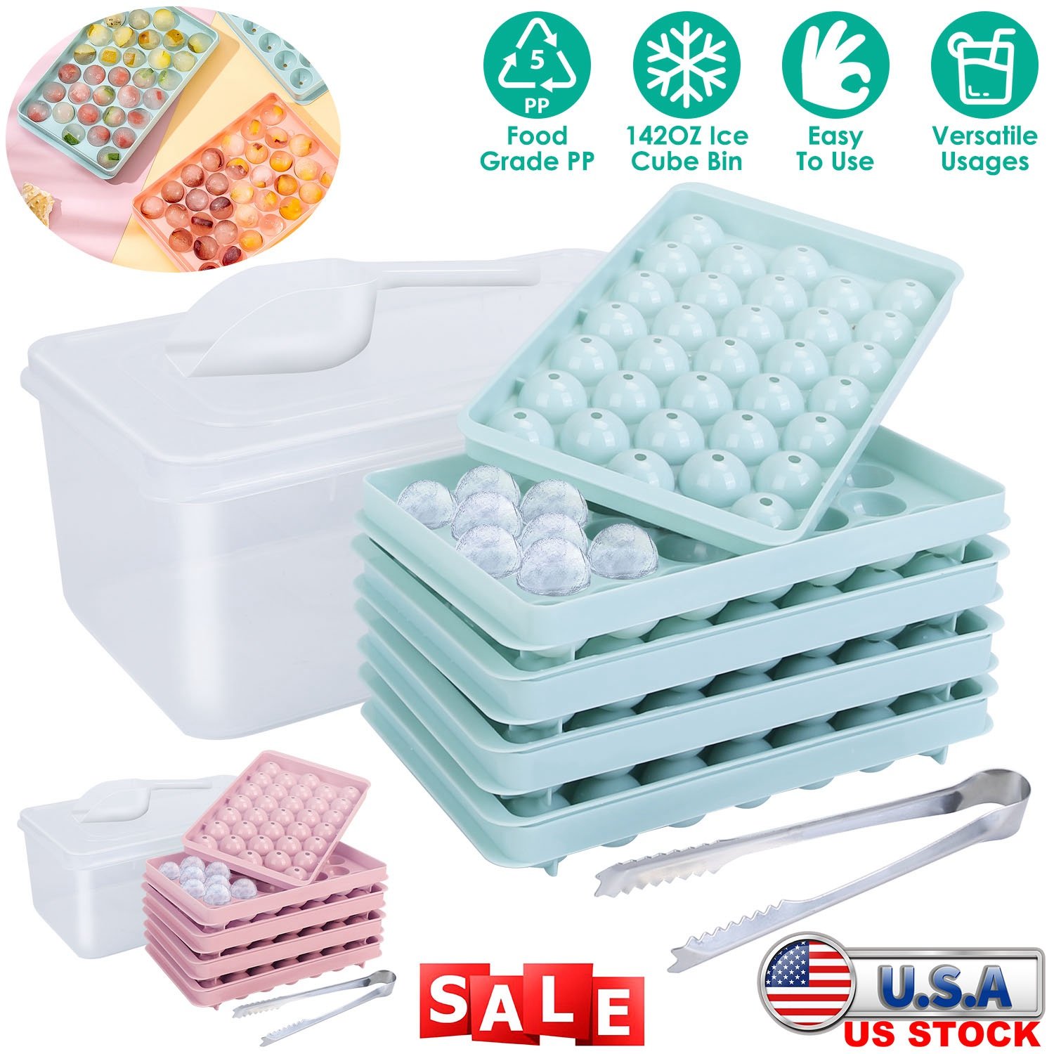 Do you like icy beverage and want to enjoy ice drinks anytime anywhere? Our 4 packs ice cube trays make ice small and fun, which is an easy and effective tool to get the ice balls in a short time than other standard ice trays. Food grade PP material makes it safe, non-toxic and durable for a long time use. With 4 trays and an ice cube container, you can make 132Pcs ice balls at one time and store about 400pcs ice balls in the ice bin to DIY your desired drink anytime with included ice scoop and ice tong.